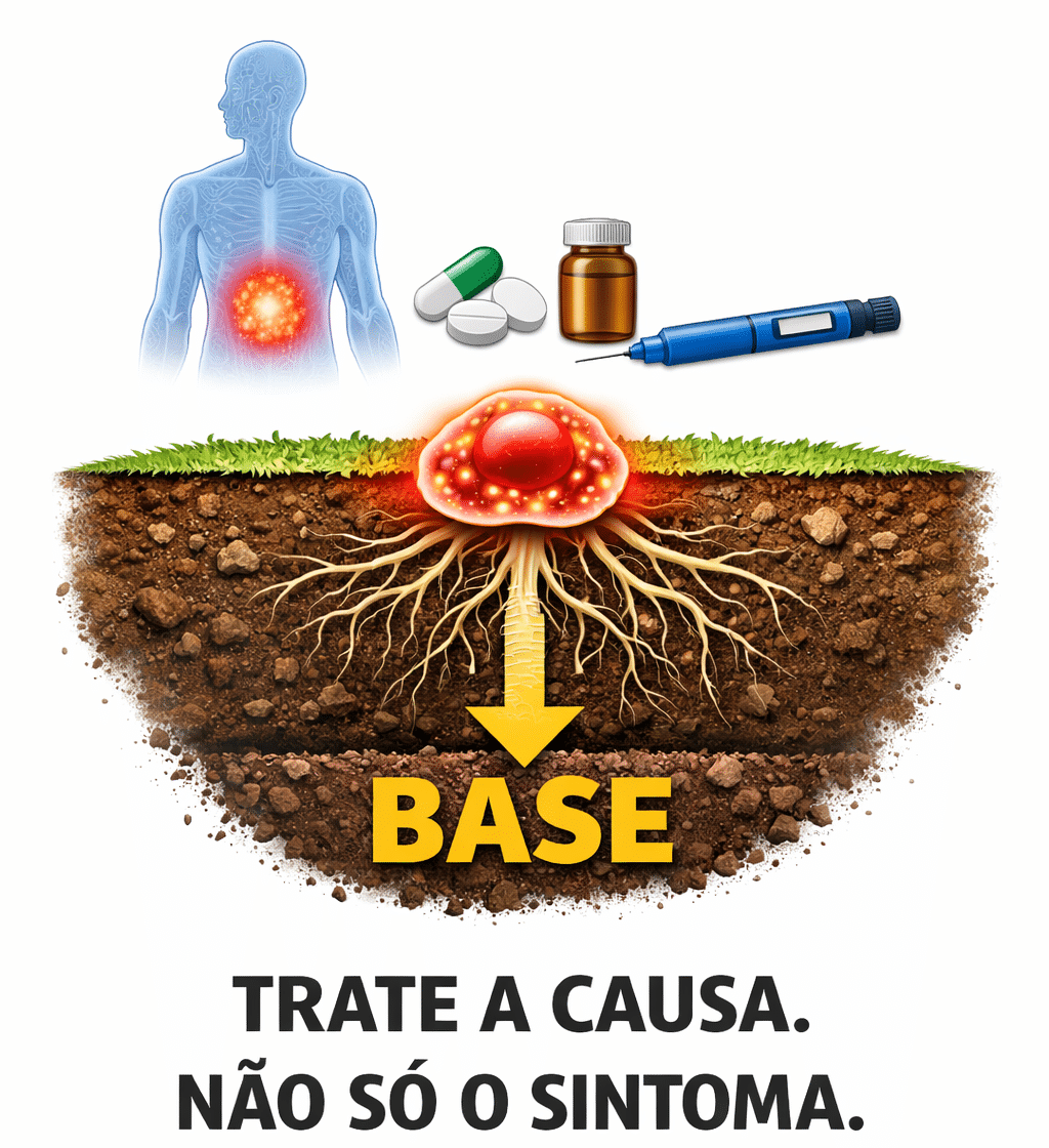 Talvez você tenha tentado de tudo sem estrutura. Sem plano claro, sem consistência, sem suporte, sem base anti-inflamatória. O problema não é que seu corpo "não emagrece". É que até hoje você só recebeu pedaços soltos.